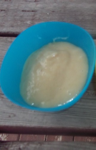 - Put bean flour, wheat flour, milk powder, onion powder and water in a large saucepan.