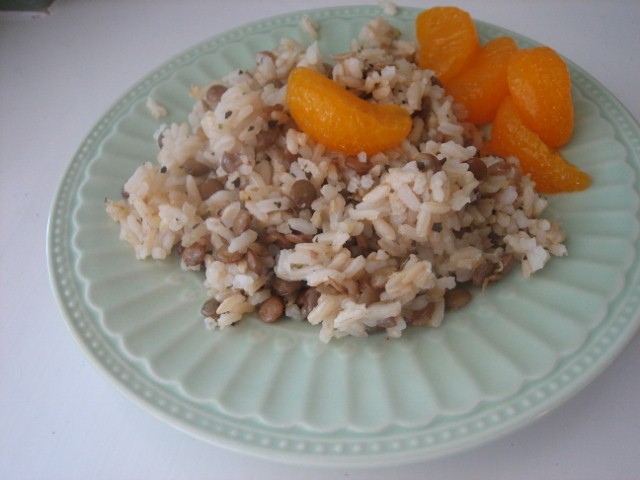 This quick dish is a great way to use leftover rice. Serve it warm or cold — as a side or a main course. The light flavor is mild enough that even my picky kids really enjoyed it…unlike the first version that was filled with curry and red pepper! We liked the sweet of the mandarin oranges with it, as well. –Mellyn